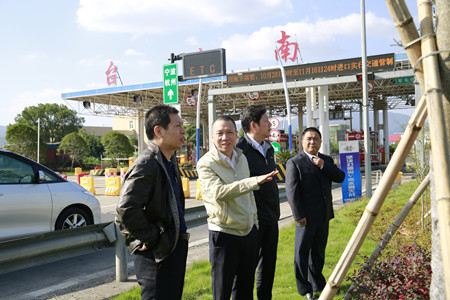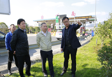 圖為集團(tuán)副董事長、總經(jīng)理張建平在臺(tái)州南收費(fèi)所主站考察協(xié)調(diào)院橋互通綠化、養(yǎng)護(hù)等工作