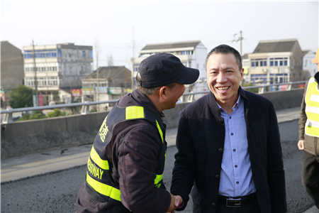 在施工現(xiàn)場(chǎng),張建平對(duì)路面專項(xiàng)養(yǎng)護(hù)綜合督查組馮濟(jì)爐和葉榮江兩位同志說(shuō),你們就是公司的眼睛,要把握施工現(xiàn)場(chǎng)動(dòng)態(tài),把好施工質(zhì)量和安全關(guān);你們是公司的手,要督促工程保質(zhì)保量快速推進(jìn)。這是一次確立科學(xué)養(yǎng)護(hù)理念、鍛煉管養(yǎng)人才,展示公司硬實(shí)力的機(jī)會(huì)??粗@兩位老同志被陽(yáng)光曬得黝黑的臉龐,張建平緊緊地握住他們的手,連聲對(duì)他們說(shuō):“你們辛苦了,你們辛苦了!”