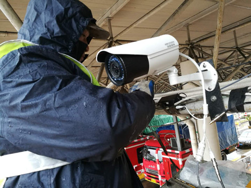 圖為工作人員在調(diào)試攝像頭 為趕在春運(yùn)前完成這項(xiàng)工作,中心全體隊(duì)員克服雨雪天氣帶來的強(qiáng)降溫等困難,兵分四路加班加點(diǎn),在各收費(fèi)站內(nèi)外廣場安裝固定云臺攝像機(jī),或半蹲著穿梭于頂棚下方狹隘空間鋪設(shè)線路,或冒雨來回奔波監(jiān)控室與車道間調(diào)試設(shè)備。經(jīng)過連續(xù)幾天的努力,四個(gè)站共計(jì)10臺“云視頻”監(jiān)控?cái)z像頭已全部安裝調(diào)試完畢。在這過程中,由于天氣惡劣,中心兩位隊(duì)員不幸感冒發(fā)燒,其中一位甚至還燒到了近40度,當(dāng)領(lǐng)導(dǎo)讓其回去好好休息時(shí),他只是輕描淡寫地說了一句:“無大障,睡一覺就好?!?/span>