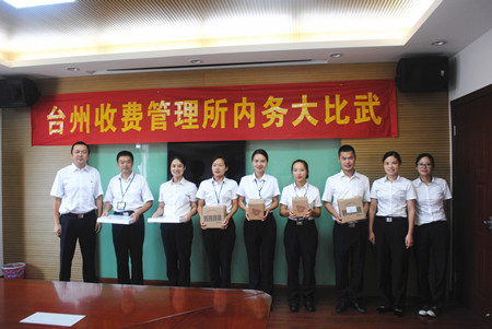 圖為征費一班、征費二班獲獎?wù)吆嫌?/span> 此次活動旨在進一步加強內(nèi)務(wù)管理,規(guī)范內(nèi)務(wù)秩序。通過比賽,大家相互學(xué)習(xí)比較,起到了共同提高的目的,同時也促進了臺州收費所整體內(nèi)務(wù)水平的提升,為進一步爭創(chuàng)臺州市文明單位起到了積極的作用。 鄭瑛芝