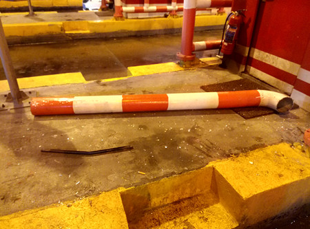 | 大型貨車過收費(fèi)站撞斷防撞欄 |