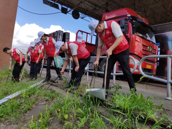 活動(dòng)現(xiàn)場(chǎng),身著紅馬甲的志愿者們,拿著垃圾夾、垃圾袋、掃把、畚斗等工具,重點(diǎn)清理收費(fèi)站內(nèi)外廣場(chǎng)的煙頭和白色垃圾。由于上下高速時(shí)有不少司乘人員直接把垃圾丟向兩側(cè)邊溝,導(dǎo)致收費(fèi)所兩側(cè)邊溝垃圾較多。盡管天氣炎熱,但志愿者們自行分組,三人一組、五人一隊(duì),充分發(fā)揮不怕苦不怕累不怕臟的精神,并互相配合集中對(duì)一些死角進(jìn)行清理。