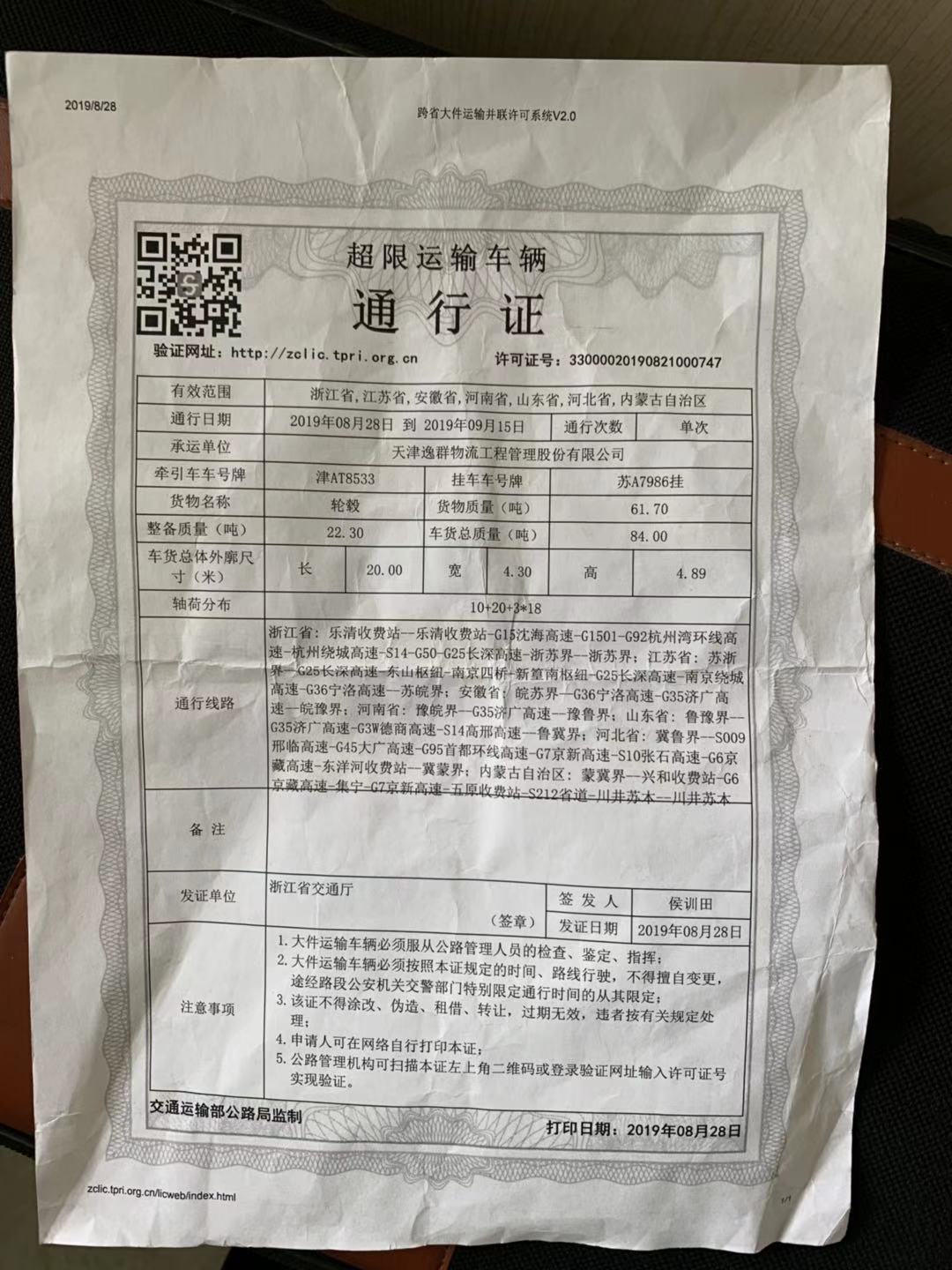圖為該車通行證 在此,筆者提醒廣大司機(jī)朋友們,一定要合法裝載,避免超限超載。高速公路現(xiàn)已實(shí)行黑名單制度,違法超限超載運(yùn)輸車輛將被納入“黑名單”,如未及時(shí)處理將禁止其駛?cè)敫咚俟贰?/span>   楊雅芬