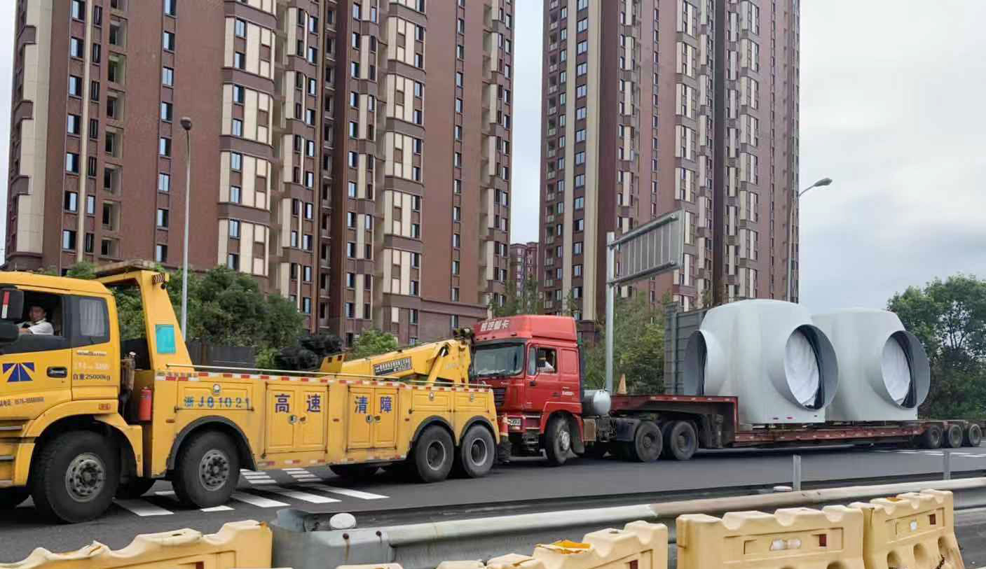 圖為被施救車拖出的超限車 接到電話的第一時(shí)間,當(dāng)班班長(zhǎng)上報(bào)所領(lǐng)導(dǎo),并丈量回復(fù)指揮中心出口超寬車道寬為4米,進(jìn)口超寬車道地面寬為4.8米。經(jīng)協(xié)調(diào),超限車輛從臺(tái)州收費(fèi)所入口車道下高速。副所長(zhǎng)和班長(zhǎng)隨即拆除內(nèi)廣場(chǎng)的中央隔離帶,以便車輛可以通行。11:50分,交警攔住寧向出囗車,入口封閉。施救車拖著該車緩緩從入口車道開出。 經(jīng)詢問得知,該車辦理了超限運(yùn)輸車輛通行證,運(yùn)載大型輪轂從樂清上高速去內(nèi)蒙,結(jié)果行駛至臺(tái)州時(shí),車子出了故障。該車車重84噸,原本需要繳納通行費(fèi)695元,大件運(yùn)輸優(yōu)惠后僅需繳納395元。雖然車子壞了,但駕駛員依然向工作人員表示感謝,并感言合法裝載的好處,不然還要面臨處罰。入口封閉大概二十分鐘后,車道恢復(fù)通行。