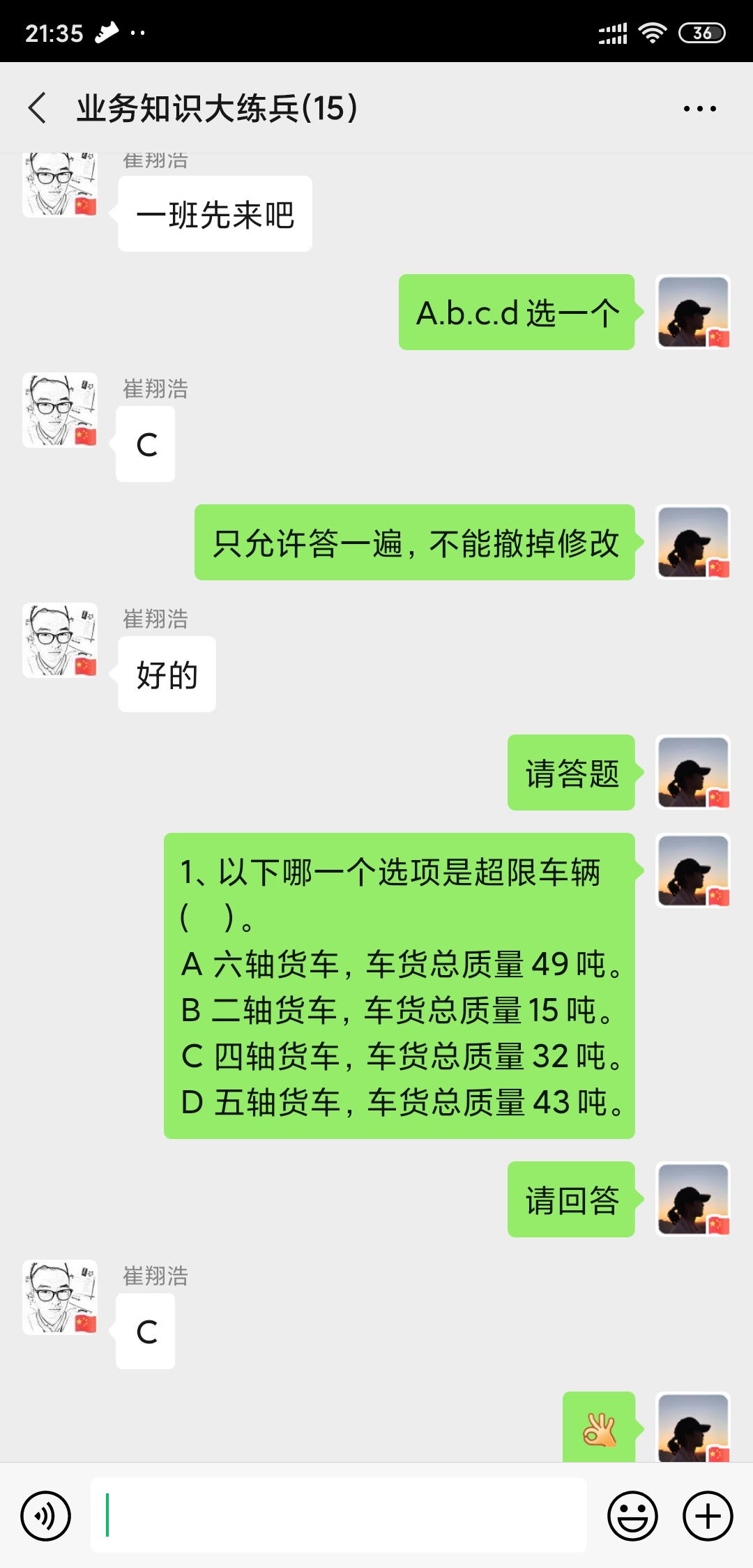 圖為比賽答題現(xiàn)場 復(fù)賽開始前,參加人員由所務(wù)人員組建了群,雖然是以網(wǎng)絡(luò)方式比賽,但比賽熱情高漲,你追我趕,分數(shù)不相上下,其中第一小組以突出表現(xiàn)最終奪冠。收費一班崔翔浩、何丹燕,收費三班任青青分別獲得個人第一、二、三名。 這種“比一比,練一練”的形式,營造了良好的學(xué)習氛圍,它有助于更全面地提升員工業(yè)務(wù)水平和綜合素質(zhì),更進一步激發(fā)全體員工深入學(xué)習新業(yè)務(wù)新知識的熱情。   楊雅芬 |