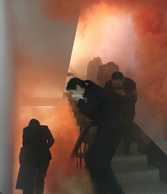 圖為樓道逃生演練 在樓道逃生演練中,大量煙霧彌漫,員工們熟練掌握逃生自救的要領(lǐng):個個用濕毛巾捂住口鼻,彎腰、沿著樓道有序快速往下逃離。 大家在突發(fā)事件面前臨危不懼、配合默契,保證了其它車輛的有序通行。在面對突發(fā)火災(zāi),也能做到有序、快速撤離。通過演練,各崗位人員不僅增強了安全意識,也提高了對應(yīng)急預(yù)案的熟悉程度和面對突發(fā)事件的反應(yīng)、處置和自救能力。 夏蓮萍 |