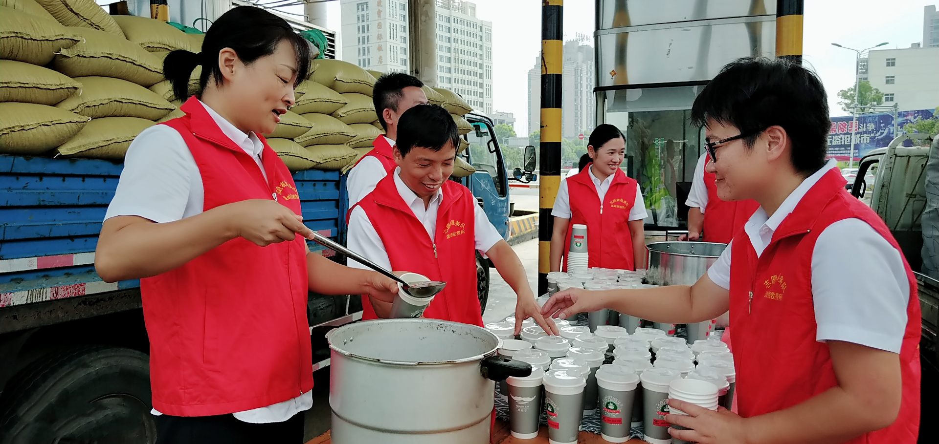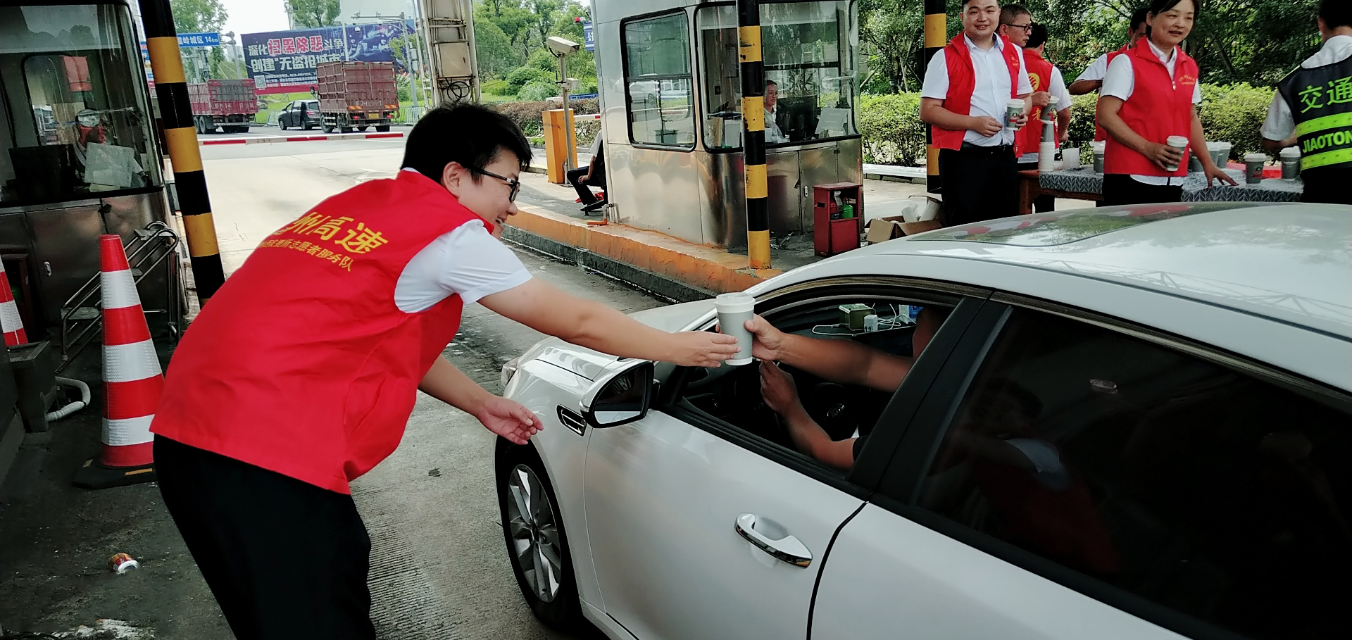 圖為送清涼活動現(xiàn)場 “師傅,你好,喝一碗冰綠豆湯解解暑吧。” 溫嶺西收費所、大溪嶺隧道所黨員帶頭,團員響應(yīng),大家主動放棄休息時間,組成志愿服務(wù)隊,頂著高溫在高速出口處為過往司乘免費提供綠豆湯、紅棗湯等飲品,同時還備足藿香正氣水、風油精等解暑藥品,讓廣大司乘在炎炎夏日感受到一絲清涼。當司乘人員從志愿者手中接過一杯杯綠豆湯時,志愿者還不忘提醒司乘高溫酷暑天氣注意行車安全。面對“春風”般微笑的志愿者,喝著綠豆湯的司乘人員都露出了開心的笑容,紛紛豎起大拇指感謝志愿者們的貼心服務(wù)。