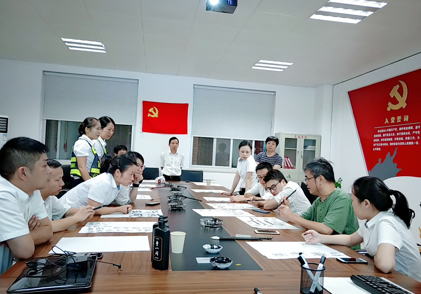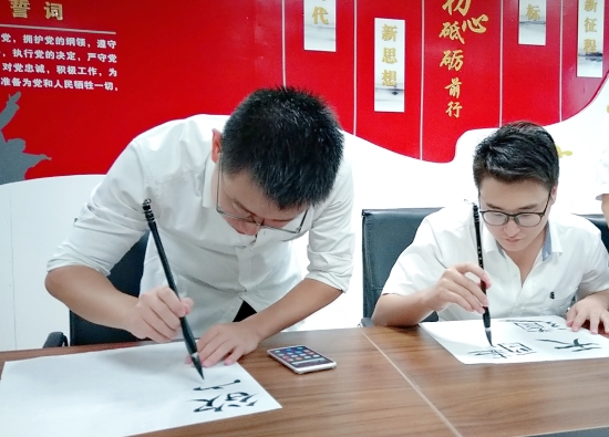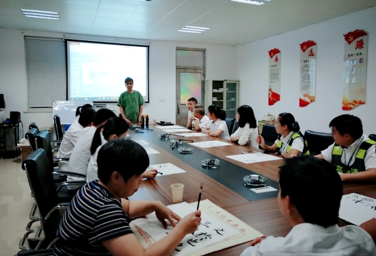 圖為學員練習書法 通過老師這種直觀的授課方式,學員們很快領會了書寫的基本節(jié)奏和韻律,每個人認真臨摹、創(chuàng)作,用眼睛感受書法美、用練習探索書法美、用心靈領悟書法美、用手創(chuàng)造書法美,共同享受了一場別開生面的書法盛宴。 此次學習使大家掌握了更多書法理論知識和書寫本領技能,強化了員工們對書法藝術的欣賞和思考,也進一步增強了員工間的凝聚力和吸引力。                                           鄭霞霞