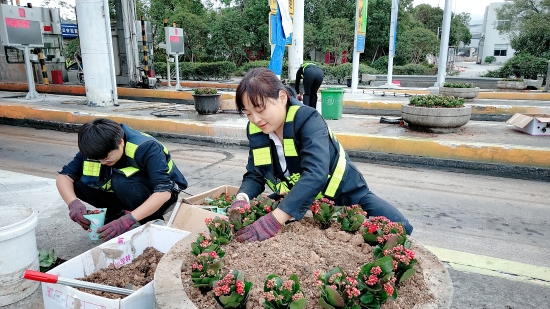 施展“栽花功夫” 細(xì)致推進(jìn)綠化工作   溫嶺西收費(fèi)所組織志愿者開展美化收費(fèi)區(qū)域環(huán)境活動(dòng)   11月21日上午,溫嶺西收費(fèi)所黨員領(lǐng)導(dǎo)干部共同開展“打造美麗站所,美化收費(fèi)區(qū)域環(huán)境”志愿服務(wù)活動(dòng)。