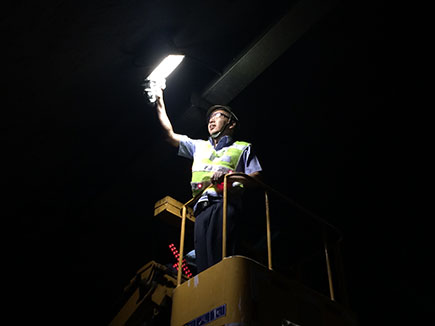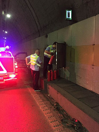 圖為工作人員更換滅火器 因隧道內(nèi)車輛往來密集,氣體和灰塵難以散發(fā),容易沉積在隧道壁、監(jiān)控?cái)z像頭及照明燈上形成污漬,此日積月累削弱了隧道內(nèi)的照明效果,影響駕駛員視線,存在安全隱患。對此,黃土嶺隧道所組織人員對隧道進(jìn)行清洗和維修保養(yǎng)設(shè)備,全面排查各類安全隱患。執(zhí)勤隊(duì)利用登高車逐一清潔寧向左洞內(nèi)監(jiān)控?cái)z像頭及照明燈,檢查消防設(shè)施狀況,統(tǒng)一對滅火器進(jìn)行掛牌完善記錄,并協(xié)同維養(yǎng)中心檢修溫向隧道照明系統(tǒng)線路,修復(fù)損壞的燈具。 經(jīng)過清洗保養(yǎng)后的黃土嶺隧道,燈光通明,監(jiān)控清晰,有效地保障了隧道的安全暢通。  毛譯聆  |