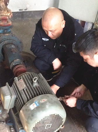 圖為工作人員修理水泵電機現場 因設備比較陳舊,而且原圖紙等資料不全,構造原理無從了解,黃土嶺隧道所所長助理金衛(wèi)軍帶領執(zhí)勤隊,一邊推測,一邊根據水泵工作原理和電器修理經驗尋找故障點,對設備可能出現的問題進行反復推敲,逐一排查,最終確定為上水位控制繼電器觸點接觸不良造成導電故障。經過對觸點的調整和修復,以及對軸承部位進行加油和電機、水泵平衡重新調節(jié)后,設備之前出現的電機震動、聲音異?,F象和無法自動進水等問題被一一解決,消防水泵恢復正常運作。 此次檢修工作不僅及時消除了安全隱患,確保設備隨時處于良好的待命狀態(tài),在檢修的過程中,也為隊員開展了一次良好的技術培訓。 毛譯聆