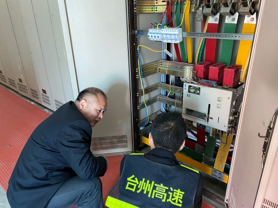 圖為檢查配電柜現(xiàn)場  目前,全國高速公路仍處于免費(fèi)通行階段,黃土嶺隧道日流量高達(dá)6.3萬輛,日趨常態(tài)化的大流量成為隧道所安全管理的最大挑戰(zhàn)。為保障隧道行車安全,道路暢通,該所持續(xù)加強(qiáng)管理,在“五一”節(jié)前,重點(diǎn)對配電室、發(fā)電房進(jìn)行了線路排查,對發(fā)電機(jī)進(jìn)行日常維護(hù)與保養(yǎng),保證在遇突發(fā)停電情況時(shí),設(shè)備能夠不斷電運(yùn)行。還對滅火器、消防泵等應(yīng)急設(shè)備進(jìn)行檢查,確保有效應(yīng)對突發(fā)事件。以及查看了隧道內(nèi)的照明系統(tǒng)、警示標(biāo)志等設(shè)施和排查房建方面有無脫落風(fēng)化發(fā)生,確保雨季前的安全生產(chǎn)。