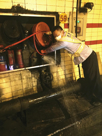 執(zhí)勤隊(duì)員們有序分工,紛紛帶上工具,開始檢修消防設(shè)備、清洗隧道內(nèi)攝像頭、維修陳舊的機(jī)電設(shè)備、拆換燈具等等,現(xiàn)場(chǎng)一派忙碌的景象。四公里長的隧道內(nèi)有82個(gè)消防箱,每隔50米就有一個(gè),而里面空氣質(zhì)量很差,比霧霾嚴(yán)重?cái)?shù)百倍,僅一只口罩根本凈化不了廢氣,但由于時(shí)間緊,任務(wù)重,隊(duì)員們顧不上惡劣的環(huán)境,努力和時(shí)間賽跑,爭(zhēng)取高效完成任務(wù)。