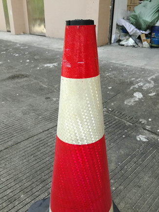 大溪嶺隧道所改良“小紅帽”  大溪嶺隧道所執(zhí)勤隊(duì)遇隧道內(nèi)車輛事故、拋錨等會(huì)出警預(yù)警,處理險(xiǎn)情時(shí)則會(huì)在車輛后方150米處擺放反光警示椎(俗稱小紅帽),它是臨時(shí)分隔車流、引導(dǎo)交通,指引車輛繞過危險(xiǎn)路段,保護(hù)現(xiàn)場(chǎng)設(shè)施和人員安全,起隔離警示作用。小紅帽的頂端有層反光膜,不用時(shí)以套疊式放置,使用時(shí)再逐個(gè)抽拔出來,因經(jīng)常抽拔,表層反光膜與桶體摩擦而導(dǎo)致反光膜脫落,一陣風(fēng)就會(huì)讓反光膜成碎片狀滿天飛舞,給隧道預(yù)警工作帶來極大的不安全因素,但若棄用這些沒有反光膜的小紅帽,則又很浪費(fèi)。