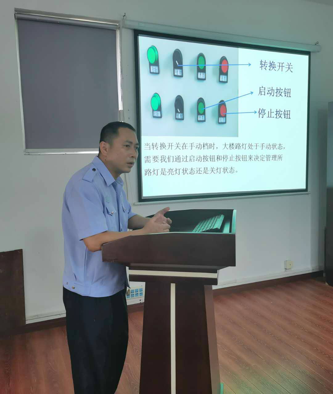 圖為電工業(yè)務(wù)培訓(xùn)現(xiàn)場(chǎng) 湯寧光在電工崗位已經(jīng)19載,有著豐富的工作經(jīng)驗(yàn)。他用聊家常的方式來(lái)講解線路控制的工作原理圖、電路的故障排除方法、光控開(kāi)關(guān)的接線方法,PPT課件中配有隧道所配電房中相應(yīng)的照片和線路圖,并注解,簡(jiǎn)潔明了,通俗易懂。在授課過(guò)程中,他每講到一處結(jié)尾,便與聽(tīng)課人員互動(dòng),現(xiàn)場(chǎng)為大家答疑解惑,課堂氛圍熱烈,互動(dòng)感很強(qiáng)。