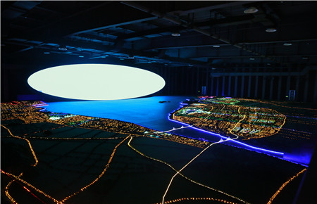 圖為考察團(tuán)參觀集聚區(qū)規(guī)劃展示館