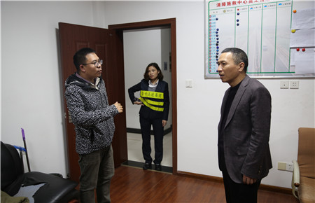 圖為張建平夜聽取施工進(jìn)展匯報(bào)