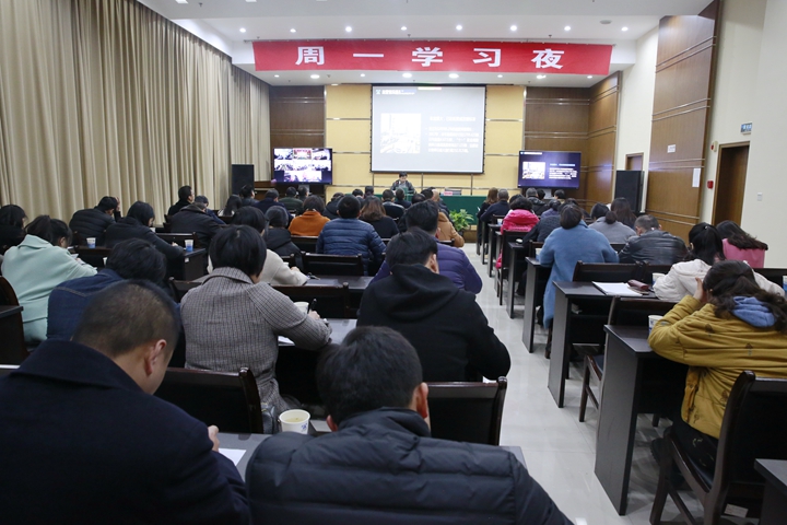圖為參加學習的黨員領導干部和職工 活動由總經理助理李軍鋒主持,集團大樓全體員工現場參加學習,各所、中心、子公司通過視頻會議系統(tǒng)學習。 陳林偉