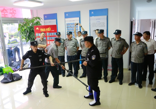 演練開始前,盧尚明對防爆盾牌、防爆鋼叉、抓捕器、警棍等各類防爆器材的功能和使用方法進(jìn)行一一講解,并示范操作,以及帶領(lǐng)大樓浙師大印象物業(yè)人員現(xiàn)場練習(xí)器械使用。