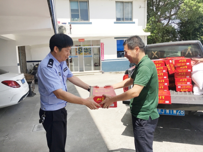 與此同時(shí),集團(tuán)總工程師江輝帶領(lǐng)工程部及收費(fèi)所相關(guān)人員到院橋派出所和交警隊(duì)開展“送清涼”活動(dòng)。江輝代表臺(tái)州高速集團(tuán)對當(dāng)?shù)嘏沙鏊徒痪?duì)的履職盡責(zé)、通力協(xié)作表示衷心感謝,并叮囑他們在高溫天氣要做好防暑降溫工作。