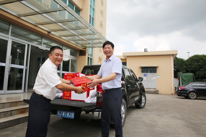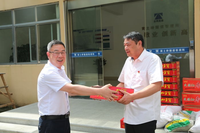 “這么熱的天氣,大家都辛苦啦!感謝你們的辛苦付出,高溫工作,一定要注意避免中暑?!奔瘓F(tuán)副總經(jīng)理陳保衛(wèi)、羅小將、工會(huì)主席項(xiàng)義超、征費(fèi)部負(fù)責(zé)人等相關(guān)人員,到房產(chǎn)公司、大溪嶺隧道所、溫嶺西、臺(tái)州南等收費(fèi)所,為一線員工送上消暑物資,慰問堅(jiān)守在酷暑下的工作人員。