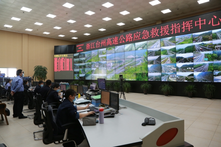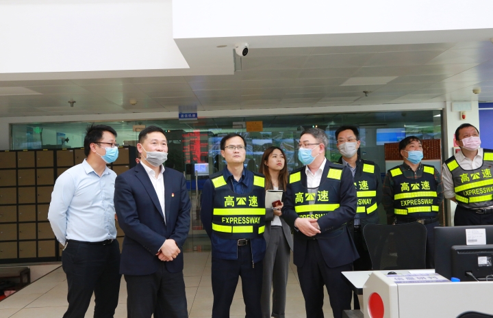 圖為金寶敏一行檢查臺州高速公路應(yīng)急救援指揮中心