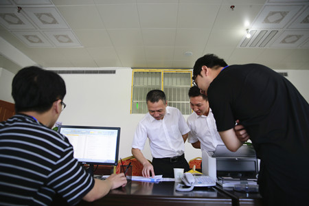 圖為集團(tuán)副董事長(zhǎng)、總經(jīng)理張建平在黃巖股權(quán)收購(gòu)點(diǎn)檢查工作資料