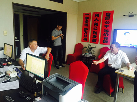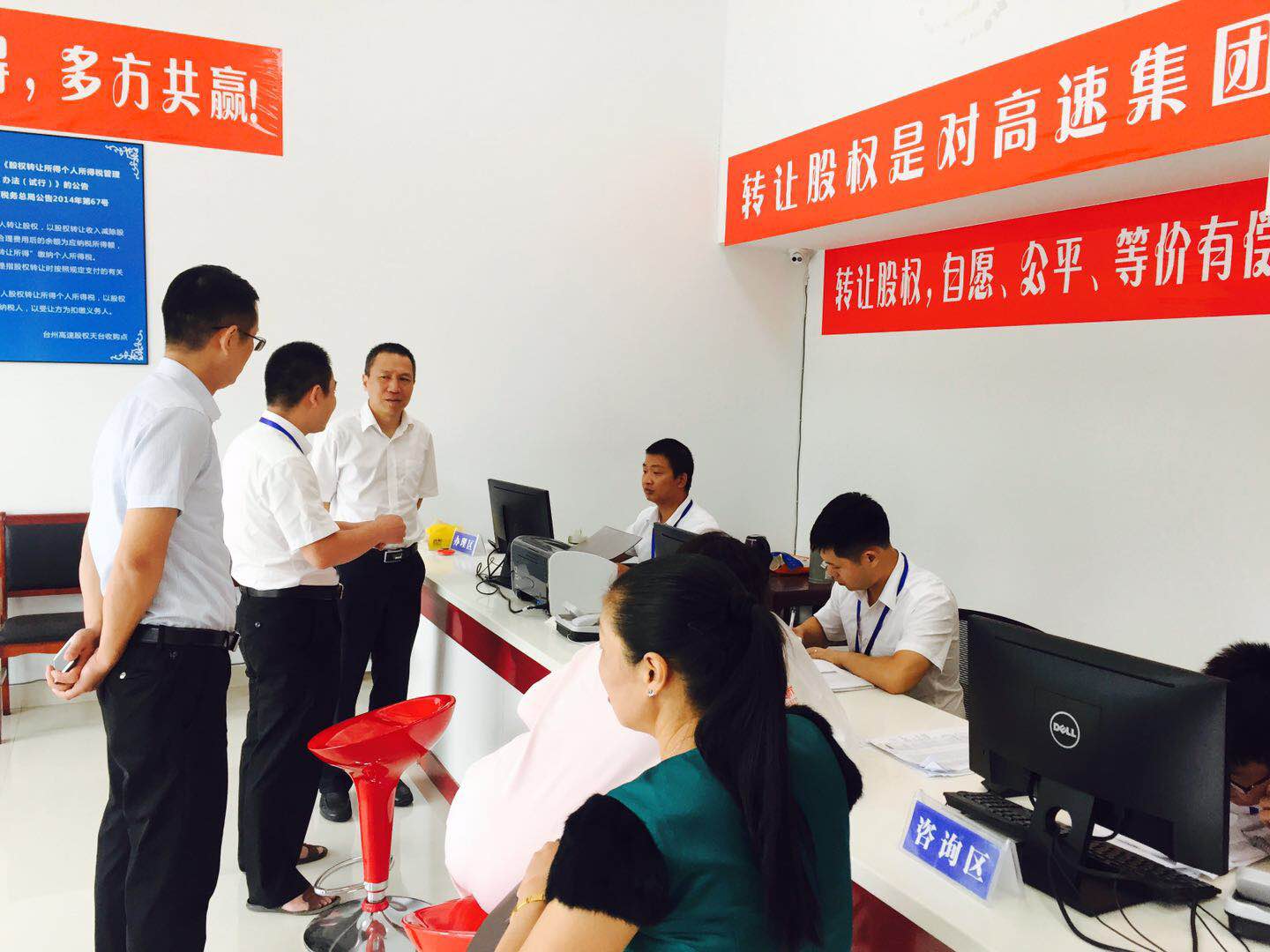 圖為集團(tuán)副董事長、總經(jīng)理張建平在天臺(tái)收購點(diǎn)詳細(xì)詢問收購工作具體開展情況 張建平向各地方政府前期對(duì)公司股權(quán)收購工作的支持表示感謝,他介紹了當(dāng)?shù)嘏_(tái)州高速股權(quán)收購進(jìn)展情況,同時(shí)闡明收購工作中存在的困難,需要地方政府繼續(xù)對(duì)我們的工作給予支持和幫助。三地政府都表示一定會(huì)全力支持這項(xiàng)工作。仙居縣分管公司股權(quán)收購的常務(wù)副縣長說,“放心吧,我們一起想辦法,先從持股較多的法人股入手,再化大力氣做小股東工作,一定會(huì)圓滿完成任務(wù)?!?/span> 張建平一行先后來到三地股權(quán)收購點(diǎn),向收購一線的工作人員表示親切的問候。張建平對(duì)大家的工作給予肯定,感謝所有人勤勤懇懇,無私付出,并希望大家繼續(xù)努力,共同實(shí)現(xiàn)目標(biāo)。工作人員詳細(xì)介紹了日常具體工作方法,他們緊跟公司股權(quán)收購總體布局,并結(jié)合當(dāng)?shù)靥厥馇闆r,因地制宜,有序靈活地開展股權(quán)收購工作。