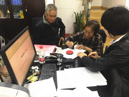 圖為椒江收購點現(xiàn)場 不巧的是,剛好收購點的股東特別多,輪到老兩口辦理得等待些時間,正好他們可以坐著仔細看看收購點的各類宣傳資料,等待中友好而耐心。 當問及王阿姨是哪年購買臺州高速股權(quán)的,她邊說邊小心地拿出一張一張發(fā)黃的原始資料,“可早啦,94年買的呢,估計你那時都還沒上學(xué)呢?!痹瓉硭翘媾_州市椒江星明實業(yè)總公司辦理法人股轉(zhuǎn)讓的。作為工作多年的財務(wù)人員,她對待每個辦理環(huán)節(jié)都甚是仔細。架著一副老花眼鏡的她,坐在工作人員的身旁,耐心地問清轉(zhuǎn)讓疑問,逐字地看著股權(quán)轉(zhuǎn)讓協(xié)議書,認真地填好股權(quán)轉(zhuǎn)讓款單,不管是簽字還是蓋章都不慌不忙。 “年輕人,你們可也得把資料看看仔細,如果出差錯讓我再來,那可得你們準備好出場費請我來哦?!蓖醢⒁涕_著玩笑對工作人員說道。 陳林偉