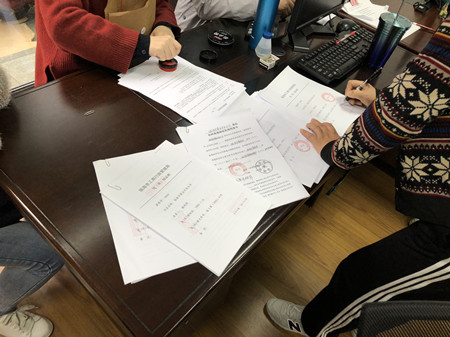 圖為法人股轉(zhuǎn)讓代表現(xiàn)場(chǎng)蓋公章