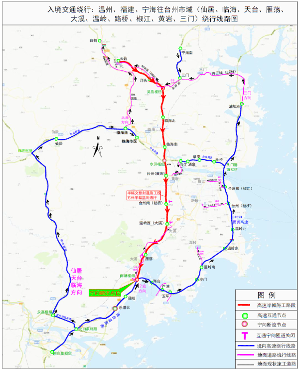 屆時雁蕩、溫嶺西(大溪)、臺州南(院橋)、臺州(黃巖)寧波方向關(guān)閉14天,臨海南、臨海北互通寧波方向進(jìn)口關(guān)閉7天,洋頭互通上虞方向進(jìn)口關(guān)閉7天,所有車輛禁止上高速;溫州方向進(jìn)出口將根據(jù)改道需要臨時關(guān)閉。