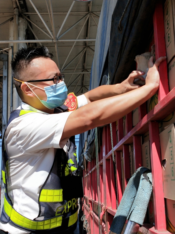 檢查綠農(nóng)車,遇到攀爬驗(yàn)貨時(shí),車輛欄桿因高溫炙烤至少在四五十度以上,臺(tái)州南收費(fèi)所班長周冬子笑著說:“現(xiàn)在的車欄桿都‘辣手’了,腳底板也像踩了‘風(fēng)火輪’。” 話音還未落,只見他蹭蹭幾下,已然爬上貨車,一邊檢查貨物一邊用袖子蹭掉臉上豆大的汗珠,被曬得黝黑發(fā)紅的皮膚在烈日下格外醒目。綠農(nóng)車開走后,他顧不上滿身汗水,拿起了掃把開始打掃灑落在車道上的綠農(nóng)產(chǎn)品。因?yàn)樗?,這些灑落的農(nóng)產(chǎn)品,如不及時(shí)清理,在太陽曝曬后將會(huì)更加刺鼻,影響收費(fèi)站的形象。 熱浪滾滾,卷不走收費(fèi)員們工作的熱情;夏日炎炎,燃不盡收費(fèi)員們堅(jiān)守的意志。他們用執(zhí)著在高溫下書寫愛崗敬業(yè),用責(zé)任和擔(dān)當(dāng)保障著高速的平安暢通。                                                 項(xiàng)丹穎