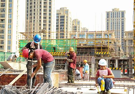 上圖為工人冒著高溫在文鼎苑工地上忙碌作業(yè)