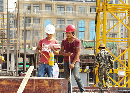 一周以來,我市出現(xiàn)持續(xù)高溫天氣,熱浪侵襲。集團(tuán)下屬子公司仁和房產(chǎn)文鼎苑樓盤施工場地上,白天溫度高達(dá)38℃,地表溫度達(dá)60多℃,頭頂明晃晃的太陽,腳踩炙熱的鋼板和腳手架,兩百多名工人正在忙碌作業(yè)中。他們頭戴安全帽,隨身攜帶一個(gè)大容量水壺,脖子上再掛一條濕毛巾,這是他們當(dāng)中大部分人的標(biāo)準(zhǔn)解暑“裝備”。