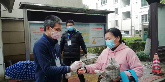 黨員包啟曉,在星洲小區(qū)援助社區(qū)逐家逐戶發(fā)放通行卡,并多次參與社區(qū)卡點(diǎn)測溫志愿服務(wù)。