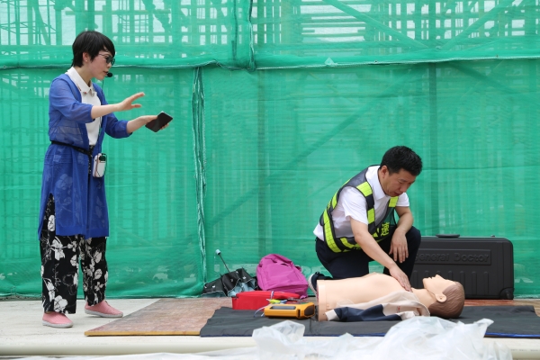 圖為李美芬在現(xiàn)場開展心肺復蘇培訓