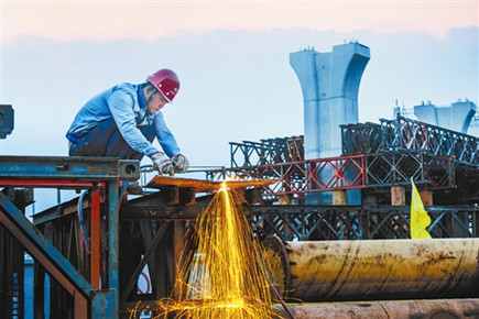 臺州高速市政公司在市內(nèi)環(huán)路建設(shè)中,緊盯全線11月11日通車目標不放松,取得較好效果。截至8月30日,公司投資建設(shè)的內(nèi)環(huán)路(黃巖段)已完成投資產(chǎn)值10.9億元,占合同總價的93%。圖為6號立交的施工人員正在緊張施工。 本報通訊員鐘 彪攝