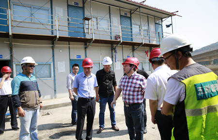 圖為集團(tuán)副董事長、總經(jīng)理張建平檢查8#立交民工宿舍