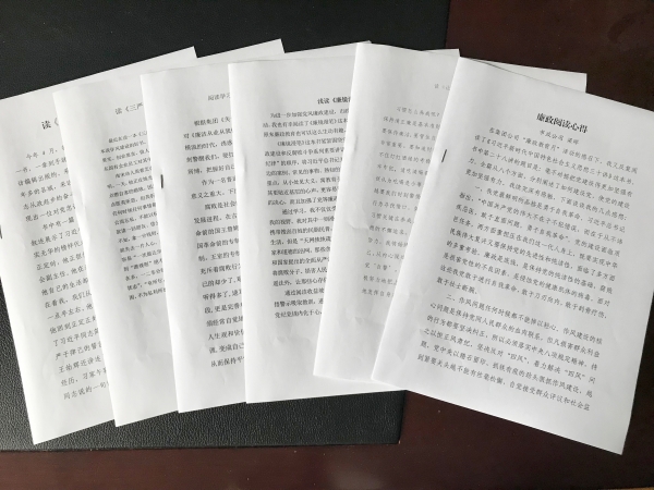 圖為勤政廉政讀書心得 早在年初,市政公司每一位員工簽訂了《廉潔履職個(gè)人承諾書》,這個(gè)月新到的兩名員工剛進(jìn)公司第一天即簽訂了這份承諾書。